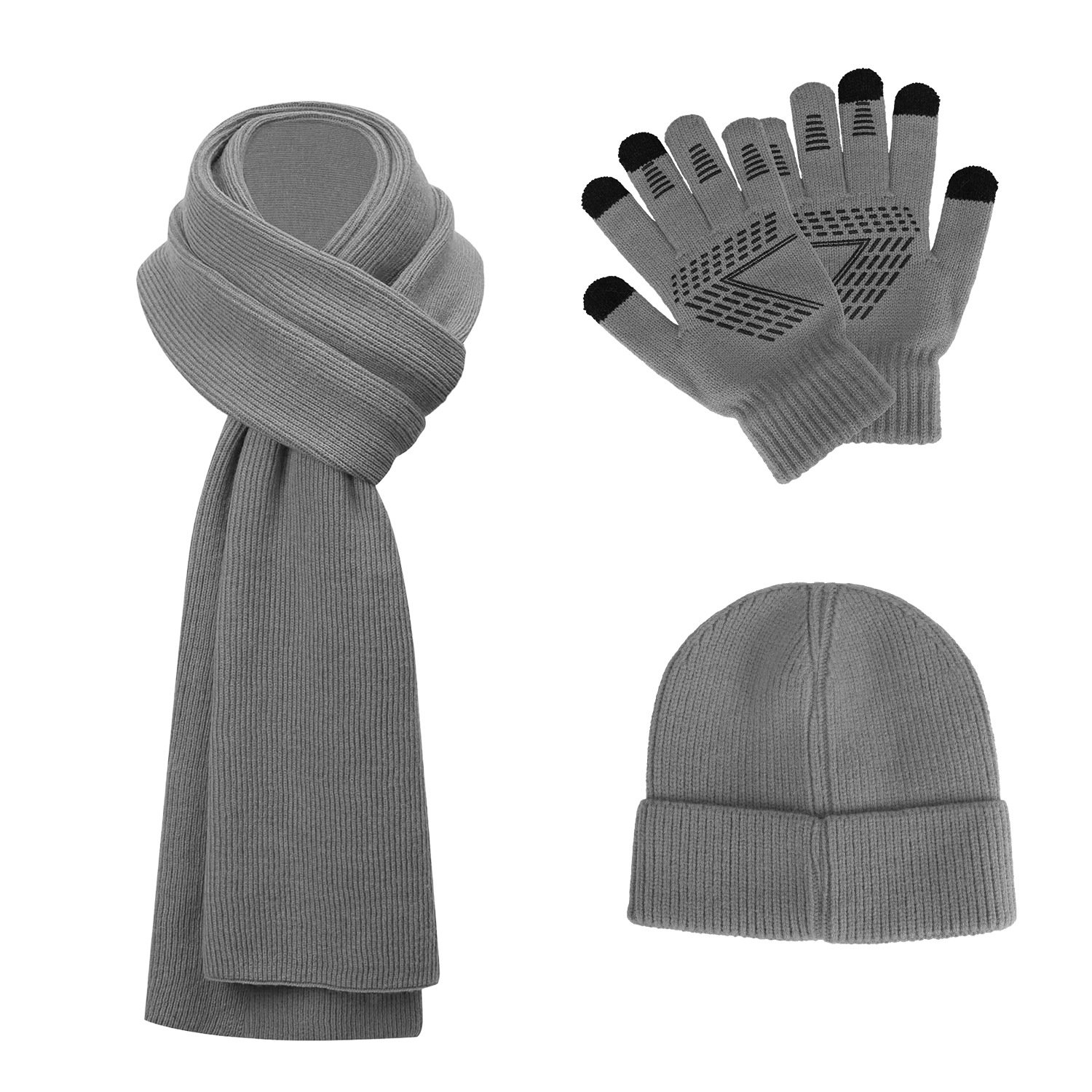 Home > Winter Knitted Hat Scarf Gloves 3Pcs Winter Warm Beanie and Touch Screen Gloves Long Neck Scarf Set Knit Beanie Skull Cap Neck Warmer Anti-Slip Mitten