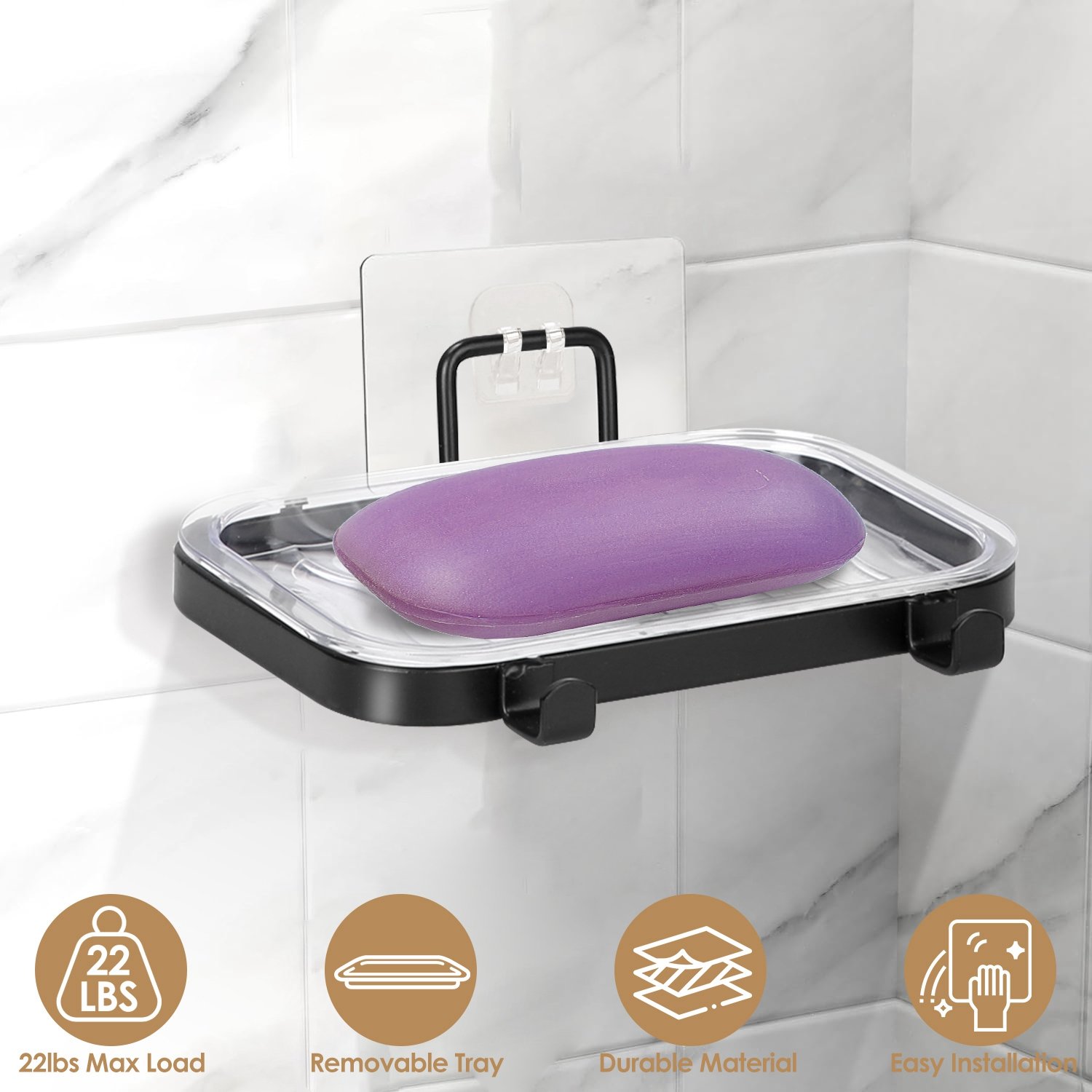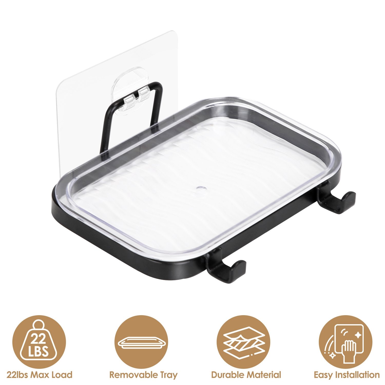 Soap Dish Soap Bar Holder Square Soap Rack Wall Mounted S Bar Shower Bathroom Self with 2 Hooks Clear Trays