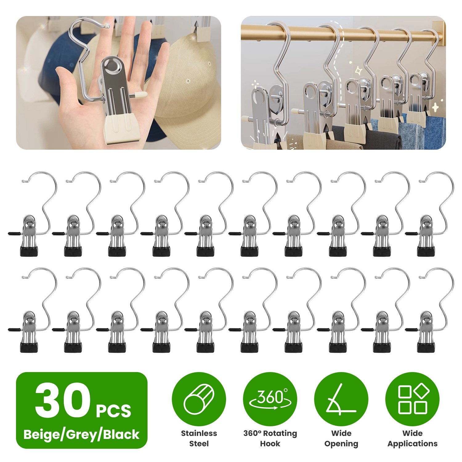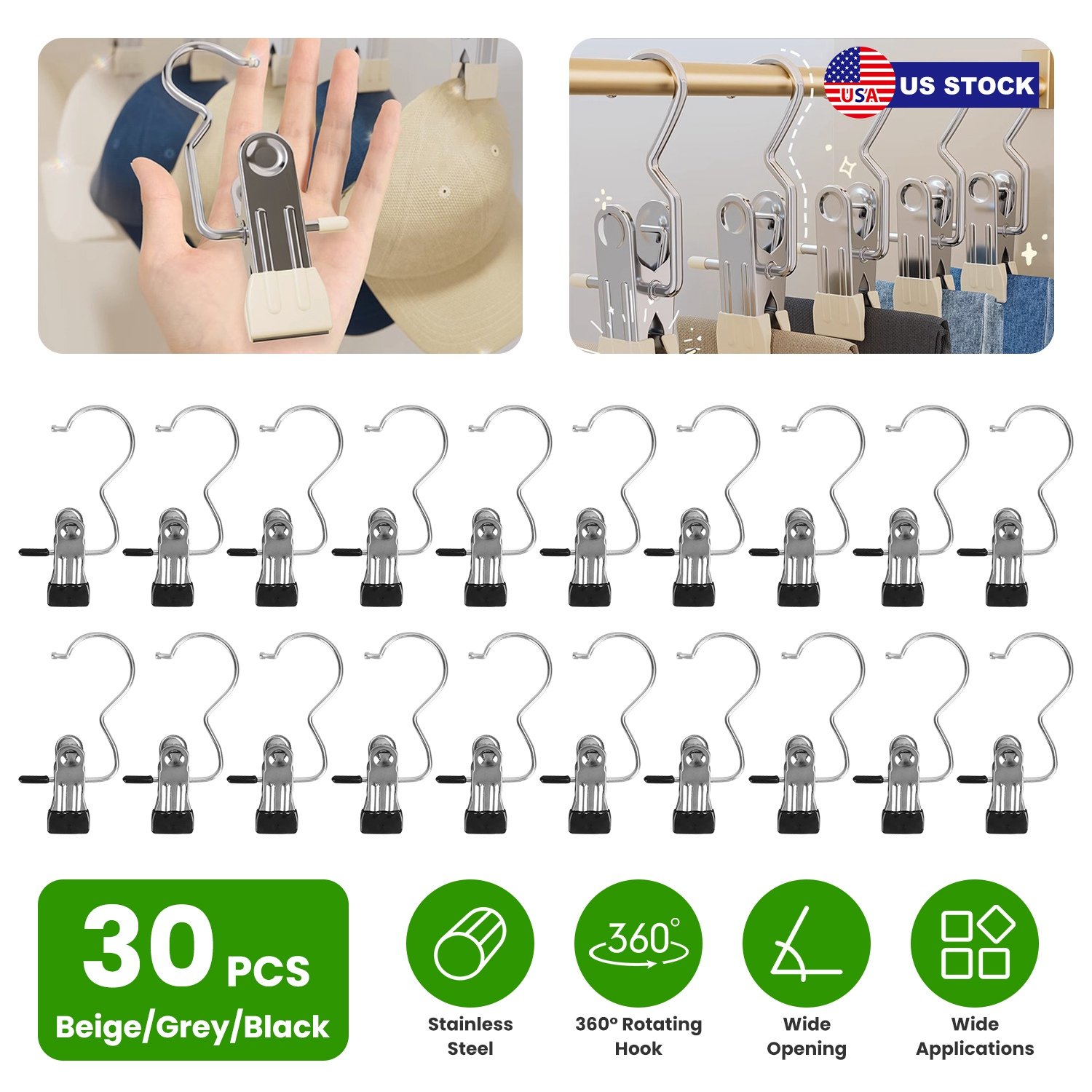30 Pack Hanging Clips for Closet Multifunctional Clothes Pins Heavy Duty Space-saving Laundry Hooks for Boots Jeans Hats Towels Socks Pants Handbags T