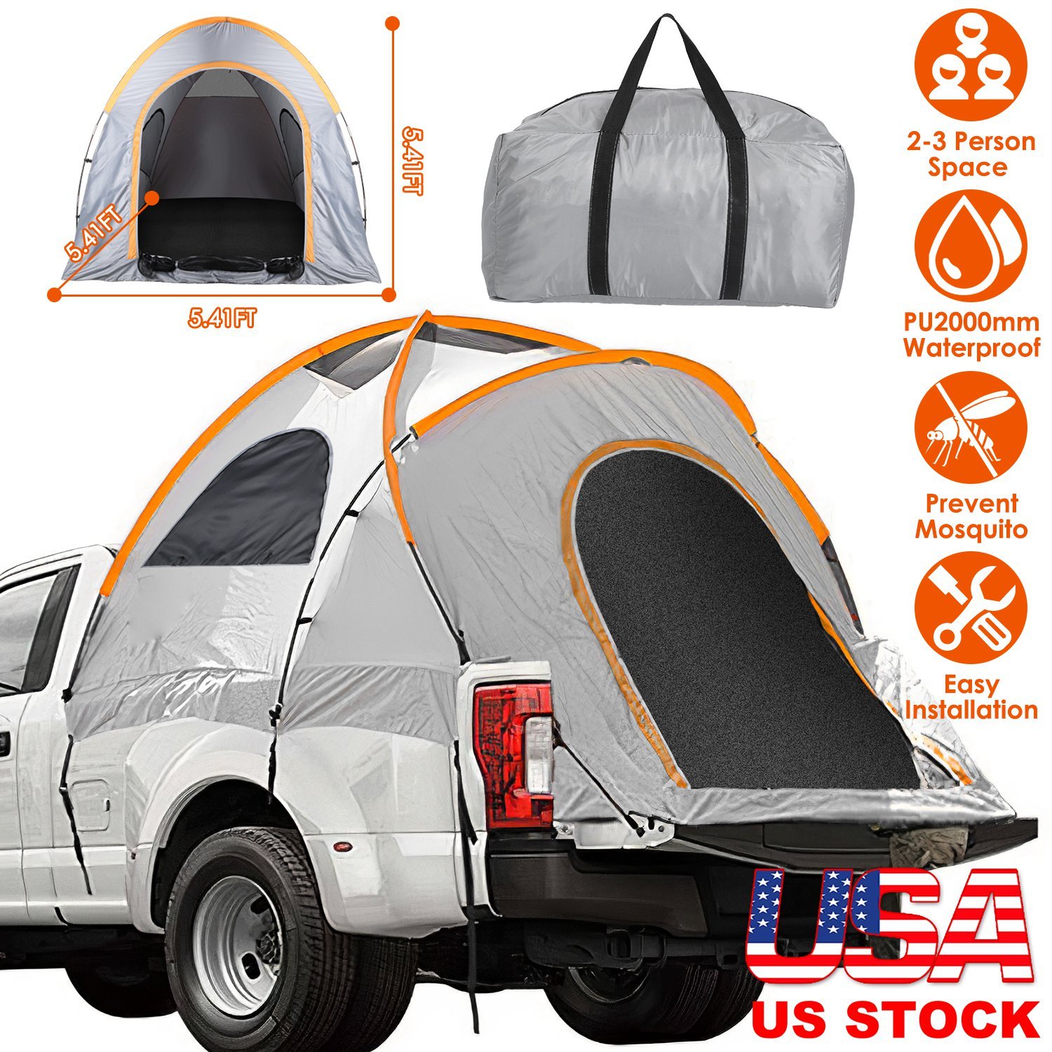 Home > Truck Bed Tent Waterproof Windproof Pickup Truck Tent with Carry Bag 5.41-6.56FT Bed Rainfly PU2000mm Waterproof for Camping Travel