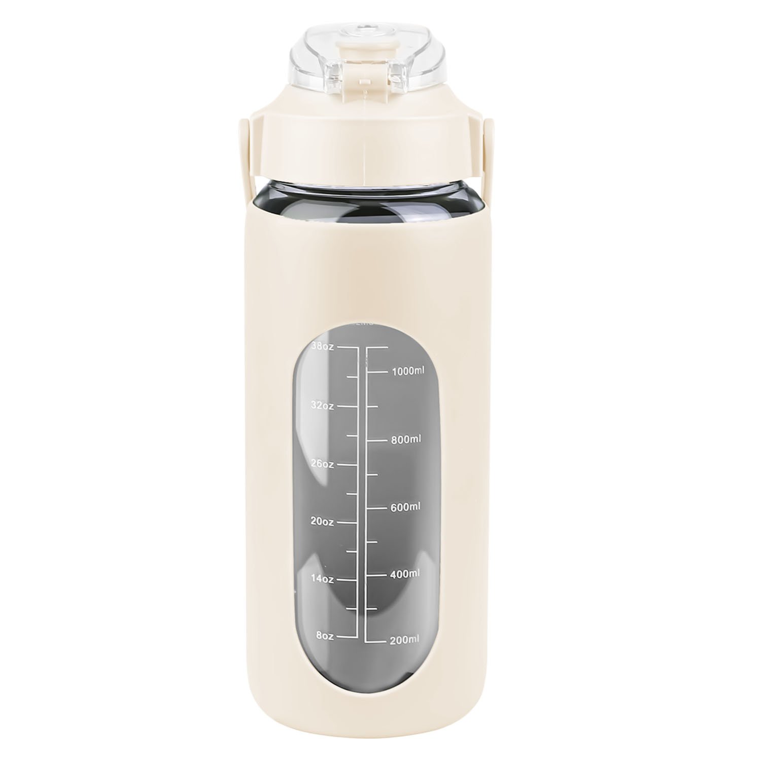 Are you tired of forgetting to stay hydrated throughout the day? Look no further than our motivational water bottle! Comes with timer markers and and precise volume on the side, helping you track your water intake with ease. With its large capacity(32Oz or 64 Oz), you can refill the sports water bottle up less frequently and keep yourself refreshed all day long. Made of high borosilicate glass, suitable for both warm and cold beverages, heat-resistant, dishwasher safe and healthy to use. Slip resistant with silicone sleeve and easy to carry with a built-in handle. And for added convenience, it features a built-in straw, making it easy to drink water on the go. Plus, its stylish design and motivational messages will inspire you to keep pushing towards your health goals. So why wait? Invest in our water intake tracker bottle today and take the first step towards a healthier, happier you!