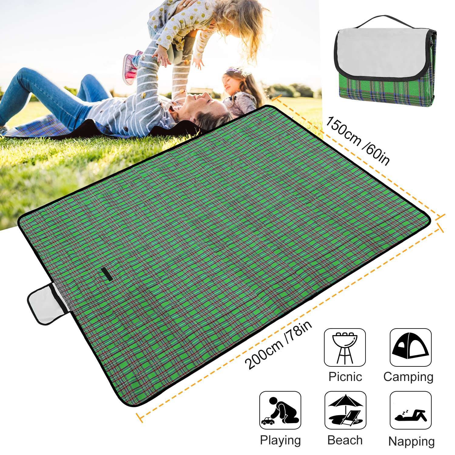 60" x 78" Waterproof Picnic Blanket Handy Mat with Strap Foldable Camping Rug for Camping Hiking Grass Travelling