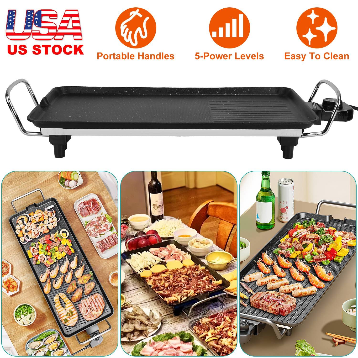 Do you enjoy BBQ with your family or friends in special holidays? Our electric grill allows you to cook delicious food like chicken, succulent beef, prawns, flavorful fish, and finely chopped vegetables and so on. You can cook your food on the flat or strip texture surface with 1-5 heating powers as you need. With portable handles, easy to carry it to anywhere conveniently. Great for outdoor adventures during camping, hiking on special holidays. It\'s also easy to wipe clean with a damp cloth thanks to the drip mouth and smooth surface. We provide M/L size for you to choose.