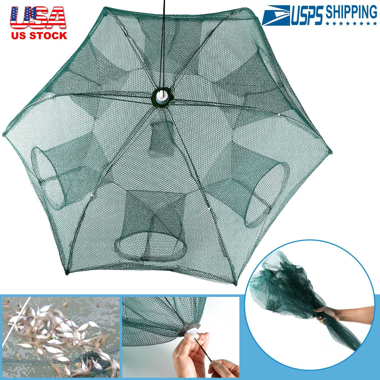 Home > Fishing Trap Net Portable Folded Fishing Bait Trap Shrimp Minnow Crab Bait Net 6 Sides 6 Holes Crayfish Cast Mesh Trap Automatic